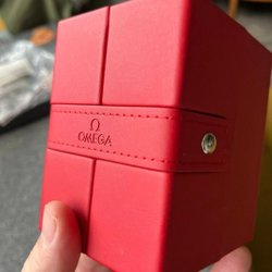 Röd Omega klockbox i fint skick. Perfekt för förvaring av din Omega klocka.