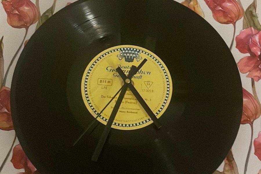 Vinylskiva som väggklocka