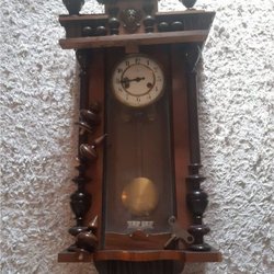 Klassisk väggklocka med detaljerad trädesign och pendel. Perfekt för att addera en vintage touch till ditt hem. Antik. Nyrenoverat urverk (kvitto finns). Klockan fungera utmärkt, men slår ej med ljud. Höjd:96 cm, Bredd: 37 cm, Djup:18 cm