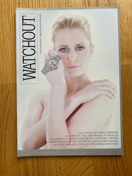 Tidningen "WATCHOUT" med fokus på klockor och smycken. Innehåller artiklar om Rolex och Annika Sörenstam, Breguet, Jaeger-LeCoultre, Sjööstrandström och Ole Lynggaard.