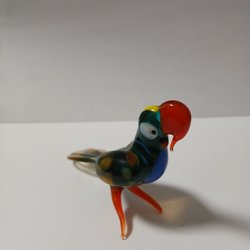 Dekorativ glasfågel med röd kropp och klart huvud. Perfekt som prydnad.