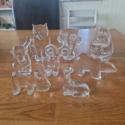 Säljer ett gäng glasfigurer. De är i olika färger och former. Perfekt för att dekorera hemmet eller som en present 19 st