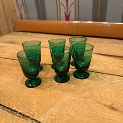 4 st små tomtar i konstglas , 3,5 cm höga i fint skick