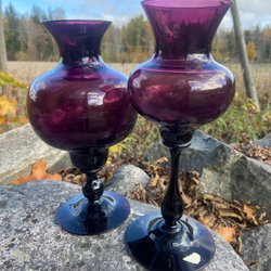 Mycket fina ljusstakar i ovanlig färgton ametist.Design Hugo Gehlin.Höjd 20 cm