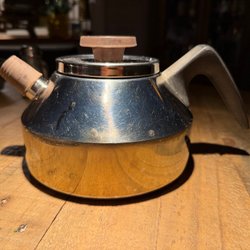 Okänd tillverkare. Påminner visuellt om Nuutajärvi Iglu, Oiva Toikka, eller Kaj Frank, Norsjö. Ingen signatur eller märkning vad jag kan se.