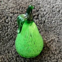 Ett päron i glas. Rött och gult.