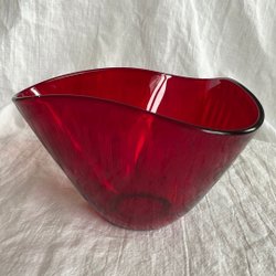 Fin räkskål från Gullaskruf, som även kan användas som vas för vårblommor eller rosor. Fint skick med tanke på åldern. Mikronagg från tillverkningen/kantslipningen kan ses om man tittar noga.