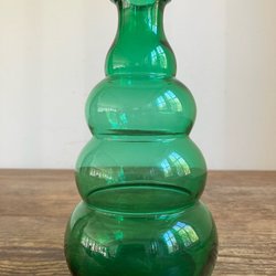 Glasvas munblåst grön hänkelvas glas vas blomvas blomstervas vintage retro