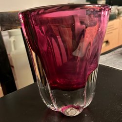 Stor pampig rosa glasvas Signerad Christer Sjögren, Lindshammar, Unique -92.