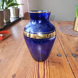 Vintage blå vas med gulddetaljer