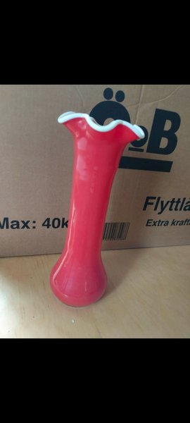 Röd vas med vit kant