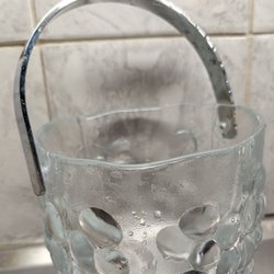 Ljuslykta/ vas i glas, fattigmanssilver, med handtag i metall.