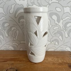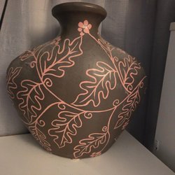 En dekorativ vas med blommönster. Vasen är i keramik.