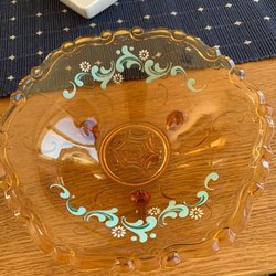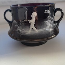 En dekorativ vas i opalinglas med motiv.