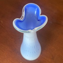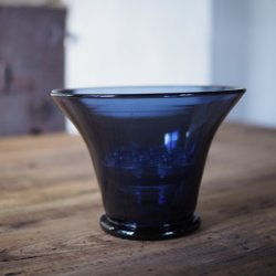 Vas i glas med blå detaljer