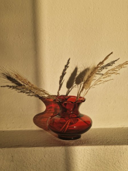 Mörkröd minivas med vågig kant upptill. Ett riktigt ögongodis!