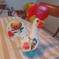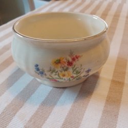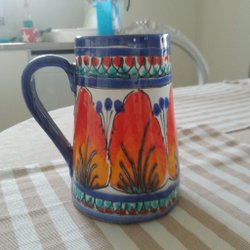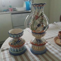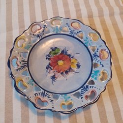 Höjd 19.5 cm. Vid kanten undertill se sista bilden en liten inbuktning, vet inte om den är tillverkad så eller om det är något som tillkommit senare.