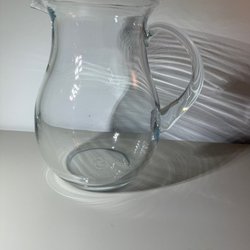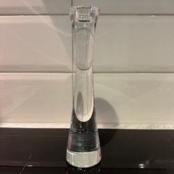 Två tomma glasflaskor med olika mönster. Passar att ha något dekorativt i.