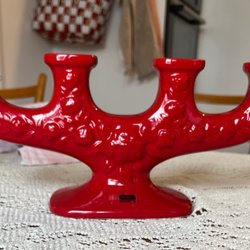 Vacker röd -orange vas i glas. Vasen har en elegant form och är perfekt för att visa upp blommor eller som en dekorativ inredningsdetalj.