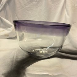 Mått se bilder.En lila glasvas med en elegant design. Vasen har en smal hals som vidgas upptill och en rundad fot. Färgen är en djup lila