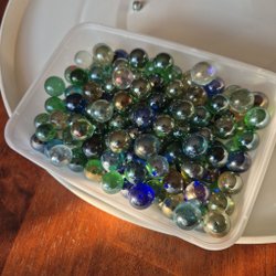 Samling av glaskulor i olika färger och mönster. Perfekt för samlare eller för spel.