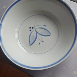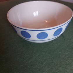 Stor skål från Gefle med gröna blommor. Diameter ca 23,5cm, höjd ca 11cm. Krackeleringar i glasyr under, lite skavanker och behöver en tvätt.