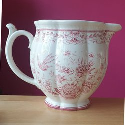 En vacker kanna från Gefle med blommönster och gulddetaljer. Perfekt för servering eller som en dekorativ inredningsdetalj.