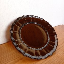 Fat från Gefle Percy-mönster. Fatet har en gul blomma i mitten och en gul rand längs kanten.