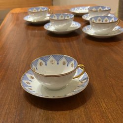 Mått: Kopp Ø ca 7 cm, höjd ca 6,5 cm. Fat Ø 12 cm. Kanna höjd ca 23 cm inkl lock.