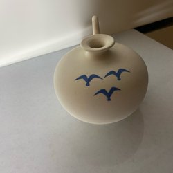 Lerkruka med duva duvblå ljusblå keramik kruka signerad