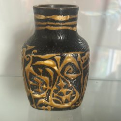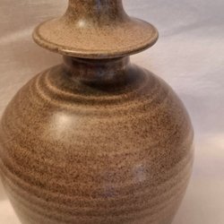 Vacker keramikvas i jordnära färger med en glaserad, mönstrad nedre del. Perfekt som inredningsdetalj eller för en liten blombukett.