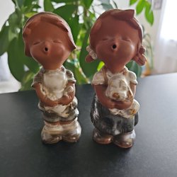 Ett par keramikbarn designade av Kerstin Grönvall flickan heter Lisa och pojken heter Rasmus.