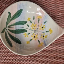 Dekorativ skål som är märkt "JIE". Tillverkningen har troligtvis skett utomlands.