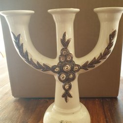 Fin lysestage fra Rosa Ljung med blomsterdekoration og hjerteformet udskæring.