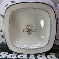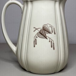 Set med kaffekoppar och tillhörande fat. Kopparna har ett mönster av gröna blad och guldiga detaljer.