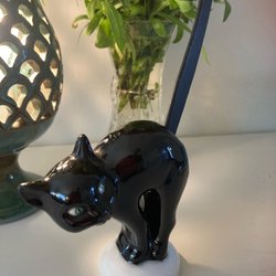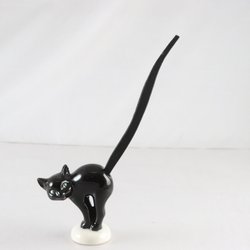 Mkt fin katt i porslin med träsvans. H 26 cm