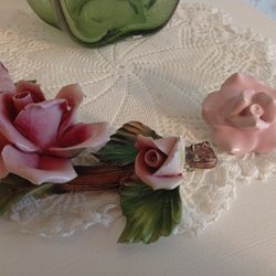 En charmig porslinsfigur föreställande ett barn som sitter på ett höstlöv. Figuren har rött hår och är klädd i en gul dräkt. Perfekt som dekoration. Goebel