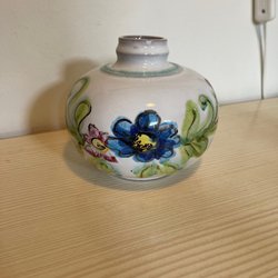 Keramik vas, retro. Begagnad skick (kolla bilderna). H; 19,5 cm. D; 13 cm. Skickas med Schenker. Skickar paketet 1-2 gånger i veckan. Betalning sker inom 3 dagar efter avslutade auktion eller överenskommelse.