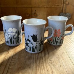 Mycket dekorativ med blommor i eller som mjölkkanna/ saftkanna