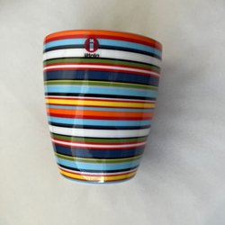 Retro vas med dekorativa ränder. Vasen är märkt med 3077 i botten. H ca 19 cm Ø botten 8 cm