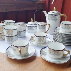 Kaffeservis i 26 delar. Felda Rhön, Tyskland, 1900-tal med blommotiv och guldkant.