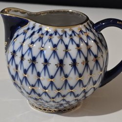 Bring the tradition of Russian royalty to your tea time with the Lomonosov Porcelain Tea cup set Cobalt Net. This porcelain Tea cup is made at the Russian imperial porcelain factory. The tea cup set are hand painted and embellished with real 22-karat gold.