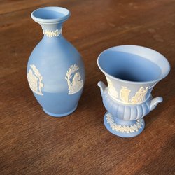 Tekanna i fint skick. Tunstall med klassiserande dekor i vitt mot blå fond, tekanna