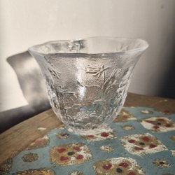 Charmig vintage mugg med en fin rosa blomma.
