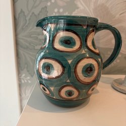 Keramikkanna med handtag. Märkt 207/T undertill.