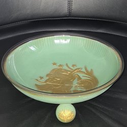 Fruktfat i keramik. Fruktfatet är rött med guldfärgade detaljer. Fruktfatet är 26 cm i diameter och 5 cm högt. Dekorativa frukter är gjorda av lätt plast . Se alla bilder och alla mina annonser.