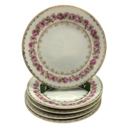5 st fina tallrikar med blommönster. Står Tjeckoslovakien på baksidan i gammal stavning. Diameter 19 cm