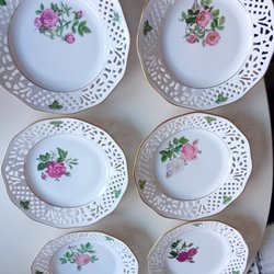ingen krackelering eller nagg. Det finns ett stort uppläggningsfat +6st assietter till, bland mina andra auktioner.