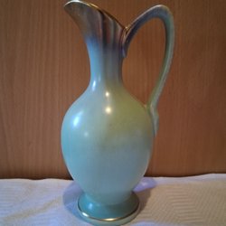 En söt liten blå keramik gräddkanna eller utmärkt till söt liten vas.