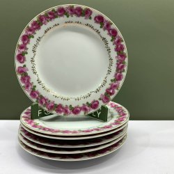 6 stycken assietter. Assietterna är vita med ett blommönster i blått och har en guldkant. Fina tallrikar att ha ditt fika på eller en kopp kaffe. Ge bort som en gåva eller behol dom själv.
